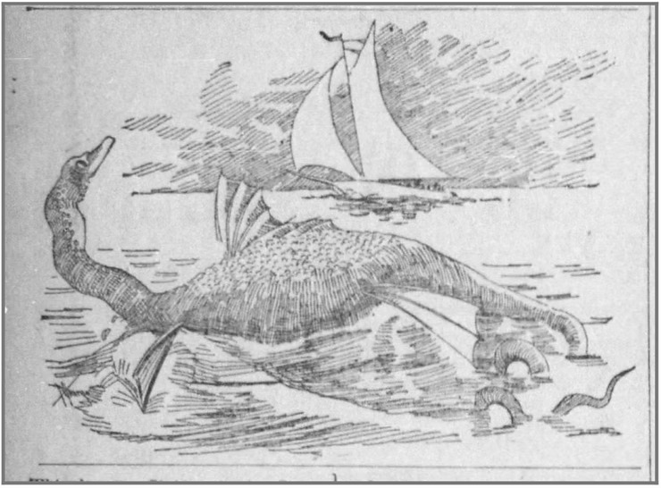 It was first seen, according to historical record, on 8 Sep 1886 by two gents rowing a skiff near Cromwell, CT, a little north of Middletown, CT on the river. Early that morning, they were bumped by something that then hit the little craft harder, launching it a bit out of the water, and as it came back down, the two men landed in the bottom of the boat. Peering over the side in some shock, they witnessed turbulent water and a long neck upon which sat a “big black head” some ten feet over the surface, with “eyes as big as small plates”, and a long body twisting back and away in the water. They rowed pell mell for shore for help, but no one could see this creature, it having presumably submerged.